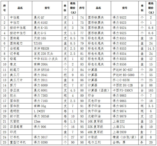 为保障正常办公需要,为教学、训练各项工作提供方便快捷高效服务,采用询价方式采购办公用品定点供货商。请符合相应资格条件的公司参加询价。 一、采购项目名称:开云办公用品供货商询价采购 二、项目内容: 报 价 表