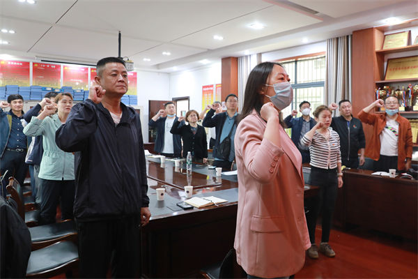 实地场馆调研结束后,全体党员来到学校党员活动室,按照预定议程开展主题党日活动。本次联合主题党日由市财政局四支部毛中庆书记主持。全体党员重温了入党誓词,一句句发自内心、庄严豪迈的誓词,凝聚着两个党支部同志们对党和人民无限忠诚的信念,凝聚着大家提振精神创典范、铆足干劲谋发展的坚定信心。
