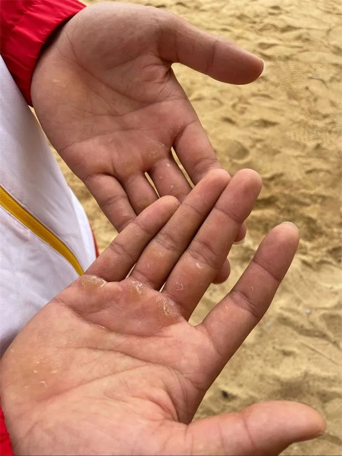 这是徐少杰长期握桨之后的手
