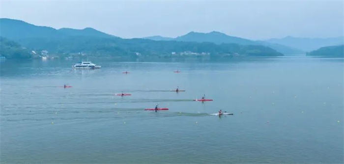 在波光粼粼的湖面上,参赛运动员们手握长桨与湖水“角力”,五颜六色的皮艇在湖面上穿梭飞驰,掀起阵阵波浪;选手们手握拉杆,蹬腿挺胸,动作整齐有序,在水中奋力滑行,上演了一场场水上“速度与激情”的大比拼。