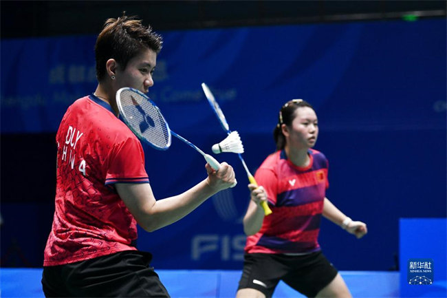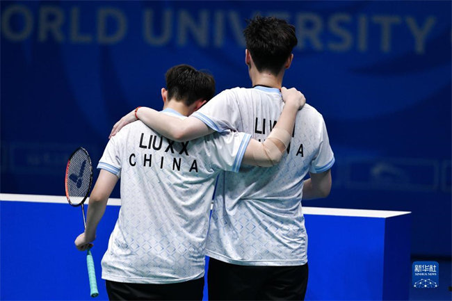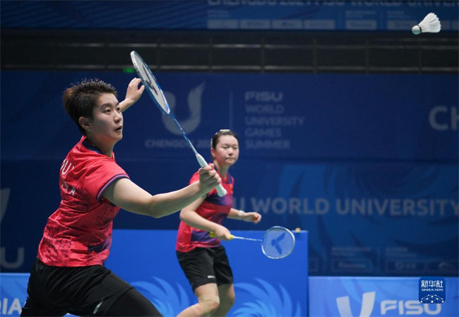 当日,在成都举行的第31届世界大学生夏季运动会羽毛球女子双打决赛中,中国组合李汶妹/刘玄炫以2比1战胜中国组合夏玉婷/杜玥,夺得冠军。