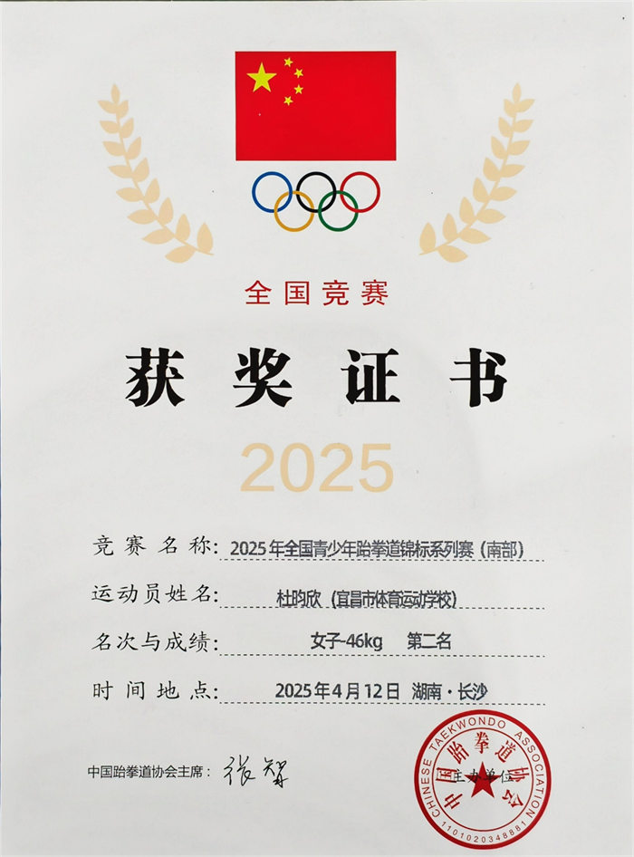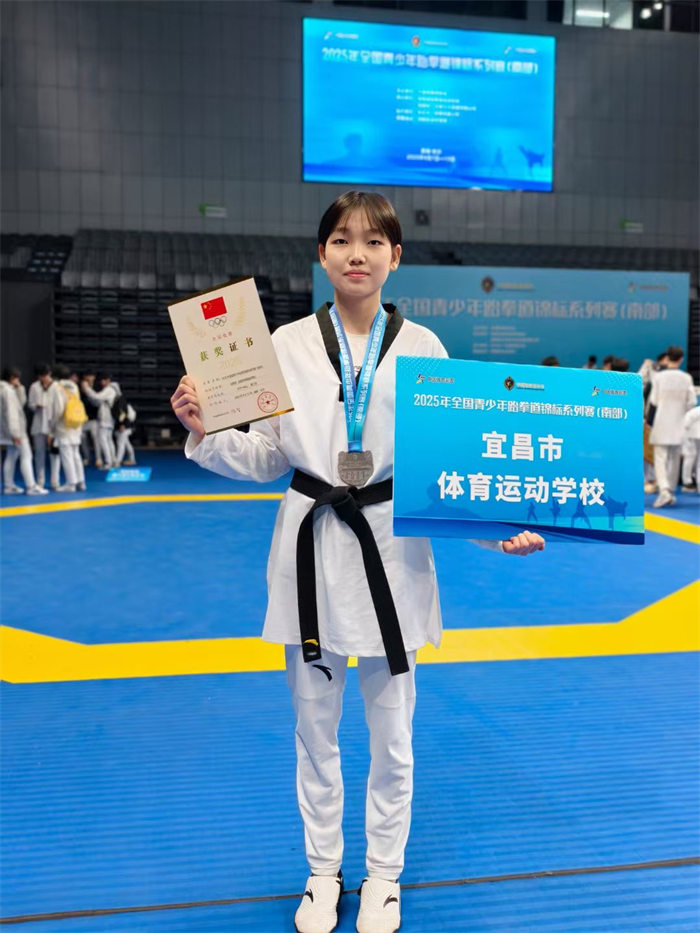 本次银牌的取得,离不开杜昀欣的刻苦训练,也凝聚着教练团队与开云中国官方网站的共同努力。未来,学校将继续坚持“以赛促训、以训促赛”的方针,发掘更多跆拳道人才,助力他们在更高舞台上展现风采!
