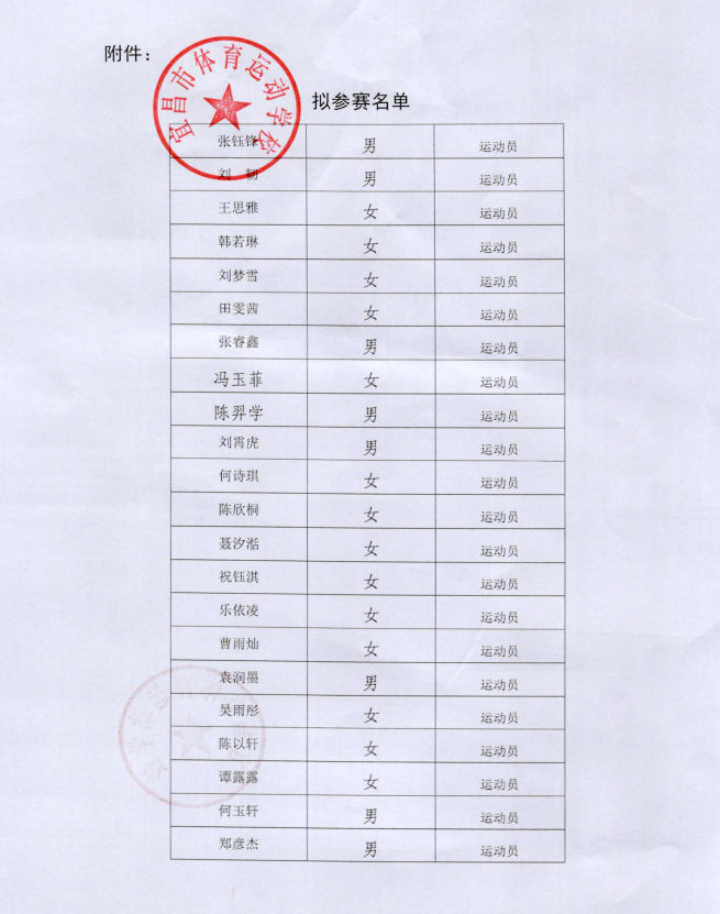 市体校关于2025年湖北省青少年射击锦标赛参赛名单的公示