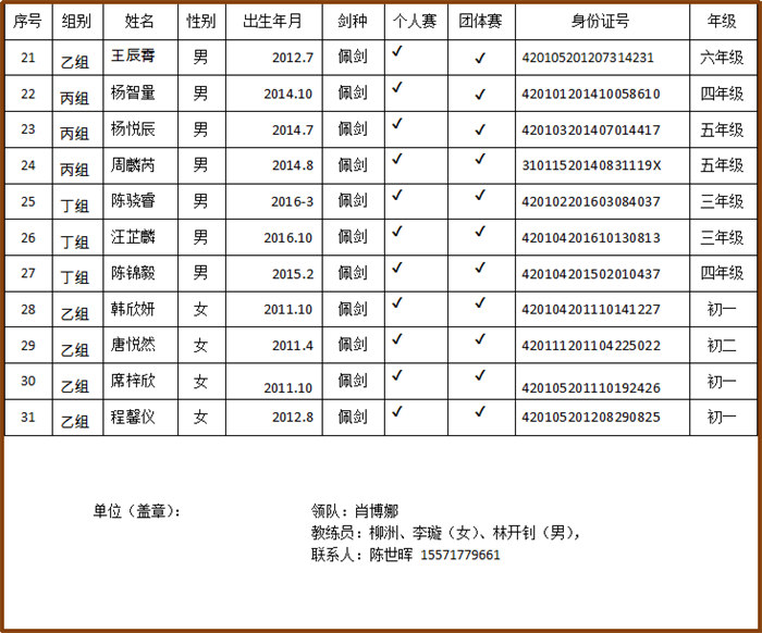 2025年湖北省青少年击剑锦标赛报名表