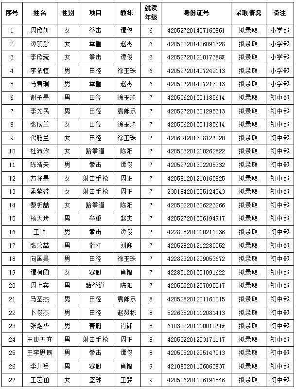 开云2025年秋季学期拟录取6-9年级学生名单