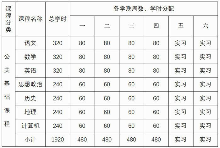 1.每学期教学周为20周,每天上午四节文化课,晚上一节文化课,一节自习。文化教学每周课时30节,其中一节为安全教育课,包含心理健康教育、安全教育、生态教育。