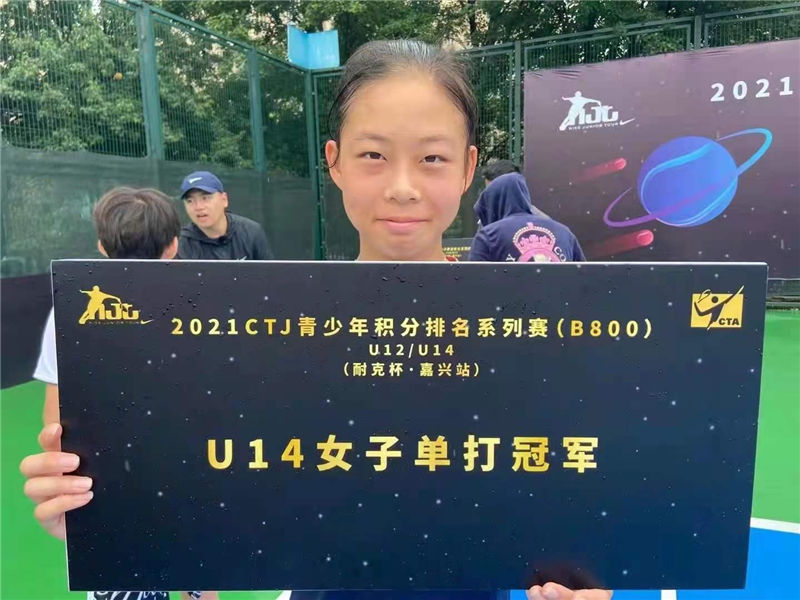 我校培养输送的网球运动员刘歆蕊,6月14日-19日参赛2021CTJ青少年积分排名系列赛(耐克杯一嘉兴站),获得U14岁组女子单打冠军。