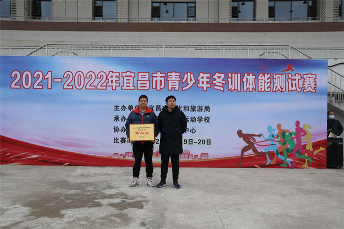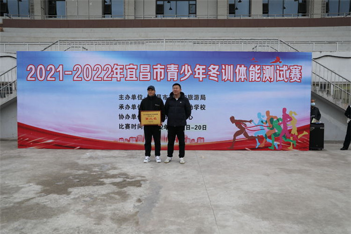 宜昌市文化和旅游局竞技体育科副科长李侃为团体总分第二名当阳队颁奖