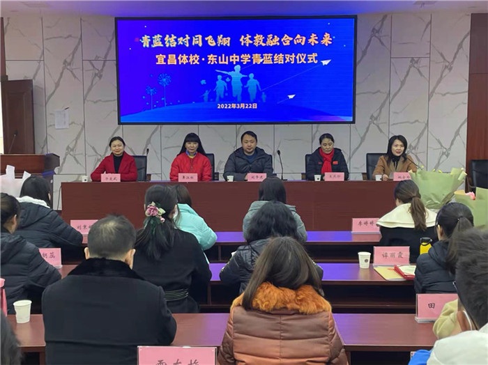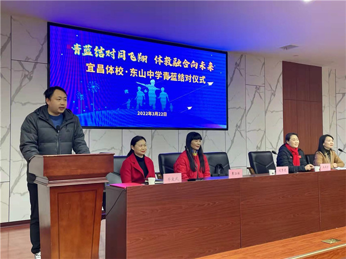 西陵区教育局副局长覃江红、市文化和旅游局竞技科科长刘争进、宜昌市东山中学校长毕爱武、开云校长王燕珍,以及参与本次结对的15名老师参加了此次结对仪式。仪式由开云副校长姚金玲主持。