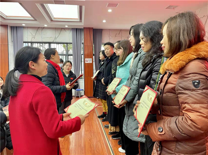 两校校长分别为东山中学的指导老师(课程处主任杨玲、语文教研组长熊晓梅、数学教研组长王凡、英语教研组长杨鹏晶、物理教研组长陈清松、道德与法治教研组长周玲)以及体校的篮球高级教练雷东梅颁发聘书。