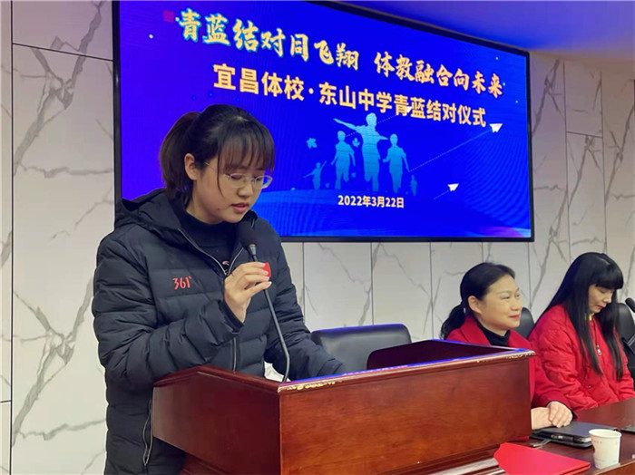 市文化和旅游局竞技科科长刘争进代表市局和学校对东山中学的大力支持表示感谢,并对青年老师提出了几点要求:端正思想,重视难得的机会,勤学好问,注重实践,潜心学习前辈们先进的教学理念和教学经验,并将学到的知识经验运用到教学实践中,促进自己的专业成长。
