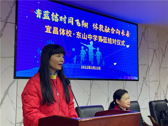 西陵区教育局副局长覃江红首先对两校前期在教学业务和体育训练方面的合作给予了充分肯定,然后对位于东山之巅的这两所学校寄予了厚望,要求老师们今后要立足于学生的全面发展,牢固树立运动意识,进一步推进体教结合,培养优秀的体育后备人才和全面发展的人。也希望青年教师们快速成长,在自身素养和教学质量上都能得到很大的提升。