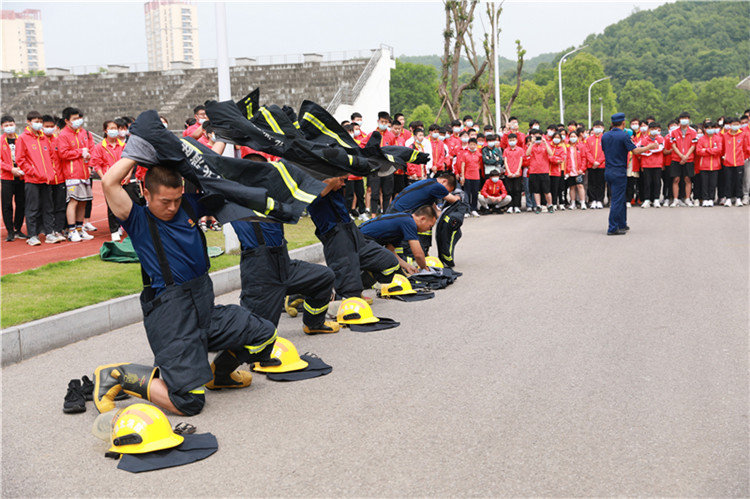 跟随队长的步伐,开云观看了消防员原地着消防救生服的表演。在消防员眼里,时间就是金钱,他们需要通过不断地训练用最短的时间穿好战斗服,确保在20秒内穿戴完成。台上一分钟,台下十年功。开云的学生也看得热血沸腾,跃跃欲试。在教官地指导下,学生们试穿了救生服,并进行了原地着装比赛。