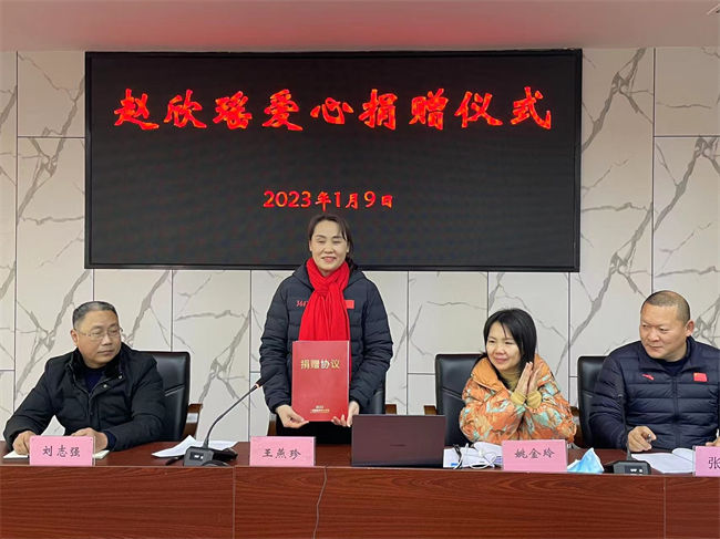 市体校校长王燕珍代表全校师生对赵欣瑶夺冠表示祝贺,并对其心系母校发展的爱心表达了衷心感谢。她表示,赵欣瑶是市体校学子奋斗成才的榜样,是学校立德树人的生动教材。学校将用好这笔善款基金,激励一批热爱体育、从事体育的困难学生继续坚定信念、自强不息,树立崇高理想,奋力追求卓越,不断积蓄前行力量,传承体育精神,以优异的成绩和荣誉回馈社会。