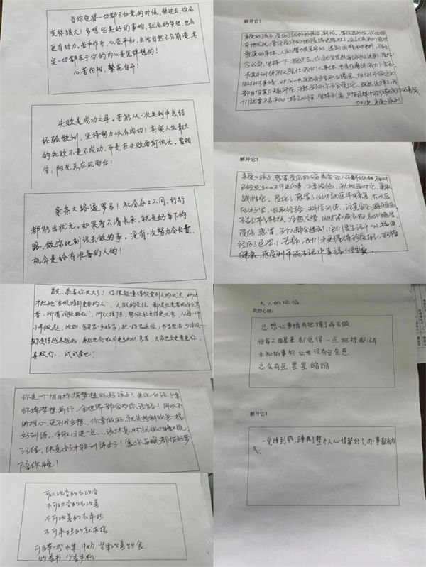 开云同时采用调查问卷的形式,让学生写下自己的心结,老师阅读学生的心声并帮助答疑解惑,帮助学生从“山重水尽疑无路”的苦闷转向“柳暗花明又一村”的明媚心境。