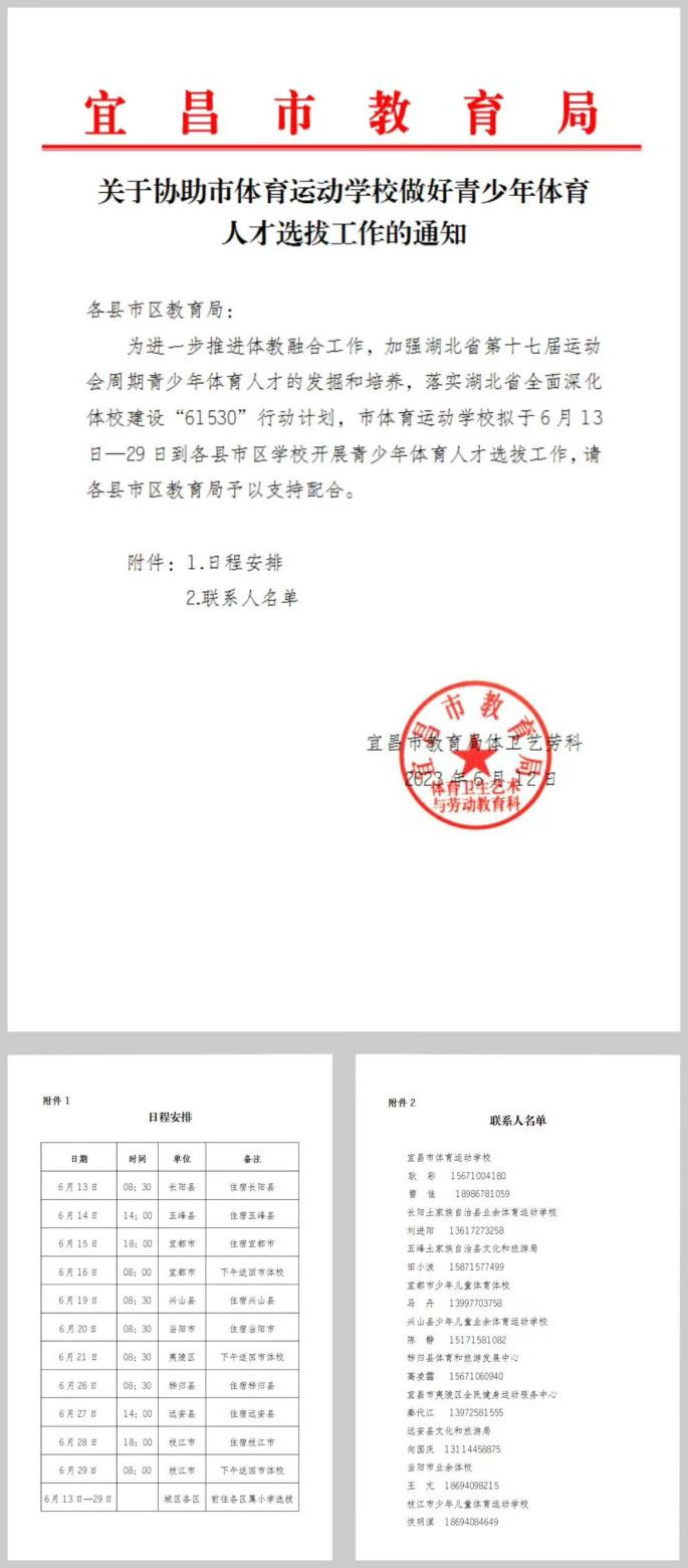 长阳土家族自治县业余体育运动学校、长阳实验小学给予市体校新周期选材工作的大力支持