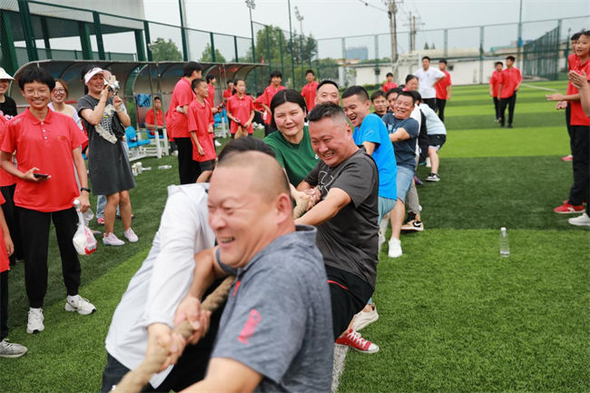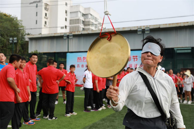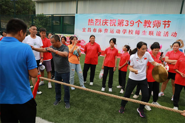 本次联谊活动,依次进行蒙面敲锣、轮转抢椅、拔河、师生足球赛等系列活动。