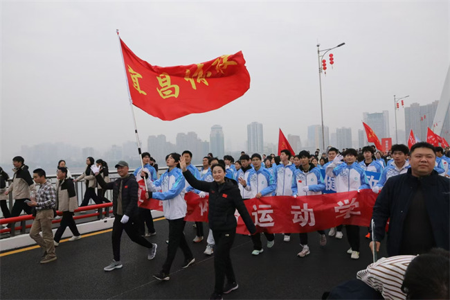 当天上午9时30分,随着一声发令枪响,由1万余名民众组成的100多个方阵依次从夷陵长江大桥超限检测站出发,以折返跑的形式两次“跨越”长江。为营造喜庆祥和的新年氛围,活动现场融入了宜昌城市标志和文旅IP形象,并设置了京剧、国风等形式各样的互动氛围点。