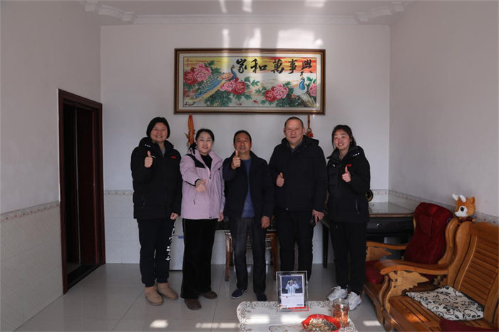 慰问射击运动员刘雅菲的家属