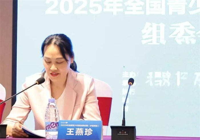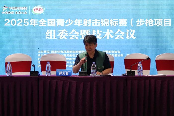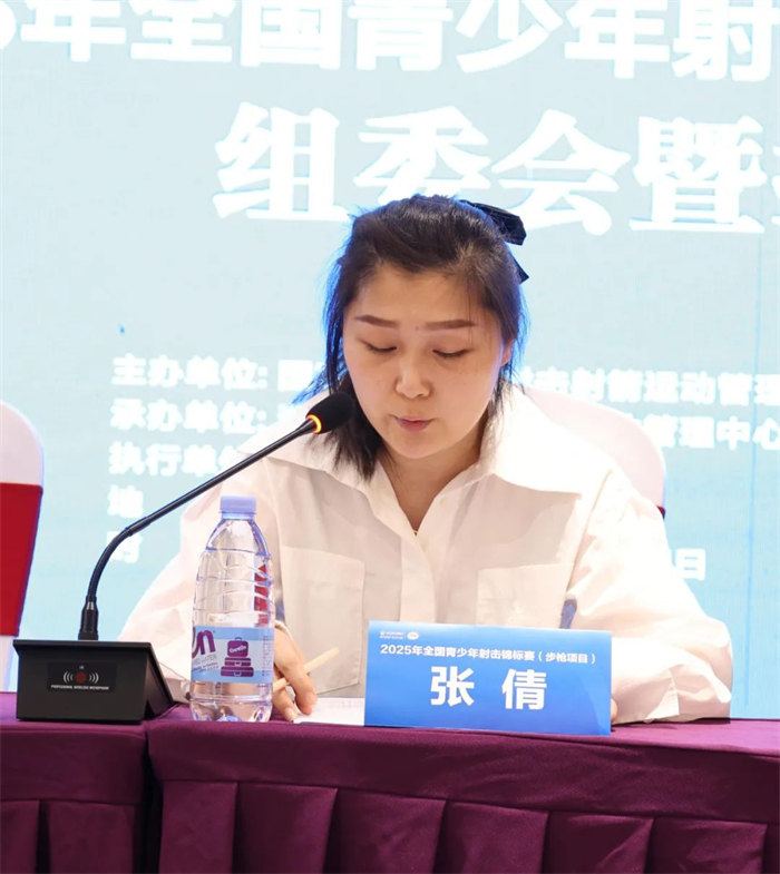 国家体育总局射击射箭运动管理中心射击部高佳琦就枪弹安全、队伍管理、赛风赛纪等方面进行部署讲话总裁判长郑文君主持本次比赛技术会议
