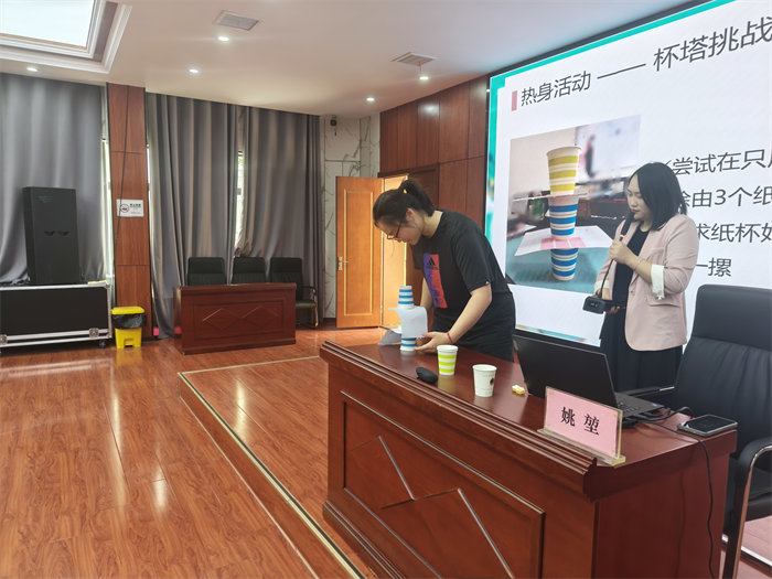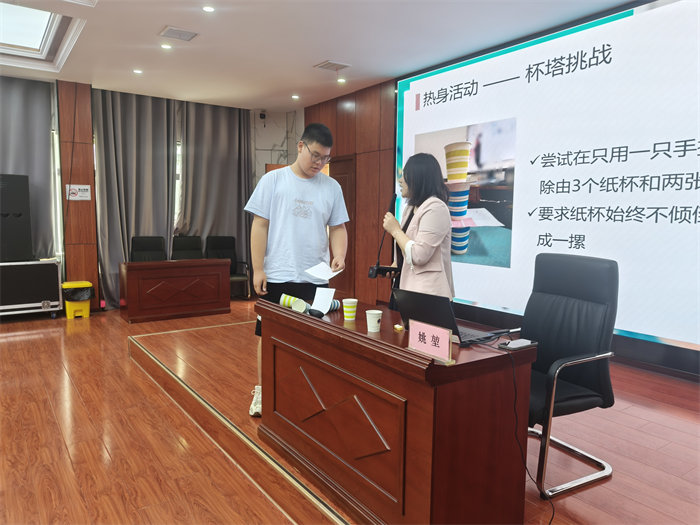 讲座伊始,姚堃老师通过趣味十足的“杯塔挑战”热身活动,迅速点燃现场气氛。小小的纸杯在同学们手中不断堆叠,构建出形态各异的杯塔,让同学们在轻松愉悦的氛围中放松身心,快速融入讲座之中 ,为后续的深入交流奠定了良好基础。
