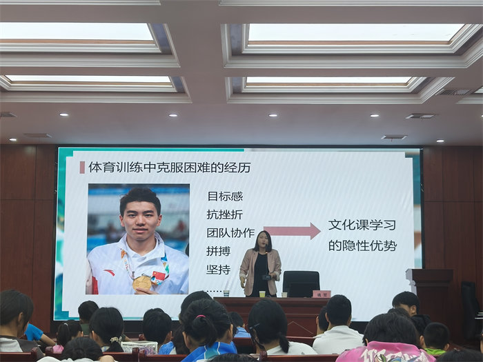 随后,话题逐渐深入,姚堃老师以孙佳俊为例,将体育训练与文化课学习紧密相连。她指出,体育训练中遭遇的体能瓶颈、技术难关,与文化课学习里遇到的知识难点、思维困境本质相通,都需要坚韧的毅力和正确的方法去克服。同学们在日常训练中培养的拼搏精神、自律习惯,同样可以迁移到文化课学习中,成为攻克难题的有力武器。
