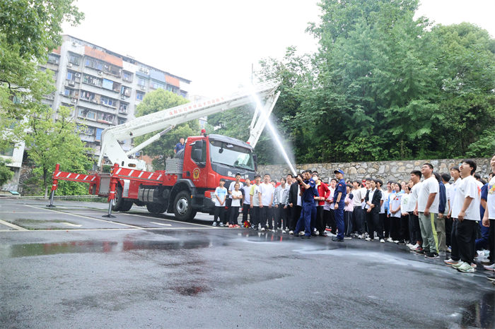 消防员结合校园火灾特点,通过实物演示和互动教学,向师生讲解了干粉灭火器、消防水龙头的正确使用方法,并指导师生及后勤人员现场体验“灭火”操作,同学们还登上消防登高车体验了高空救援,更加贴近实战了解消防救援的不易,纷纷表示,不光是要懂得逃生知识,人人更应该争做安全员。