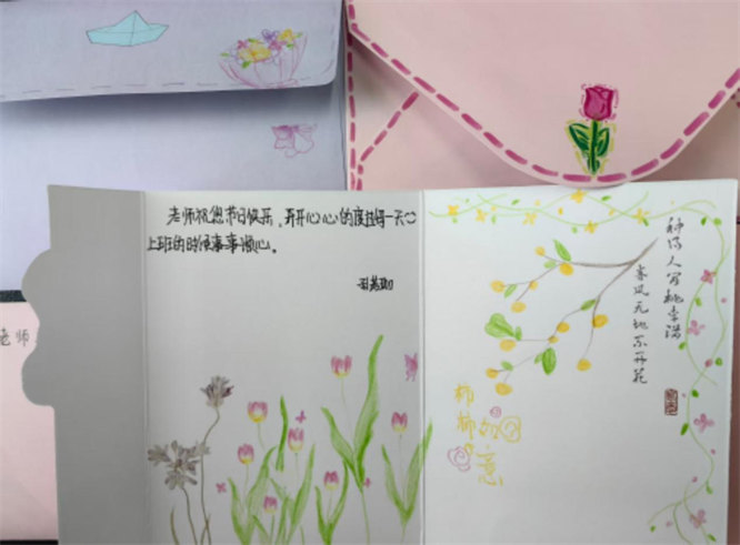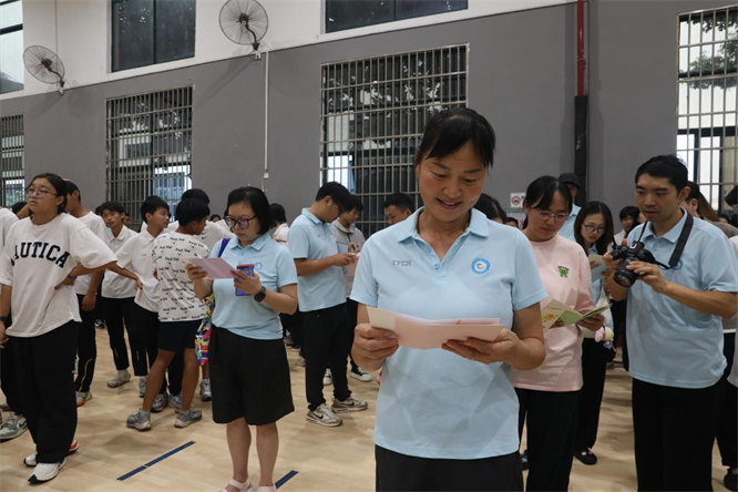 最温情的环节当属"手写祝福"活动。学生们提前精心准备了手写祝福卡,在活动现场亲手送给自己的老师。一张张卡片上真挚的话语、一幅幅稚嫩的图画,凝聚着学生对老师深深的敬意与爱戴。收到祝福的老师脸上洋溢着幸福的笑容,浓浓师生情在篮球馆缓缓流淌。