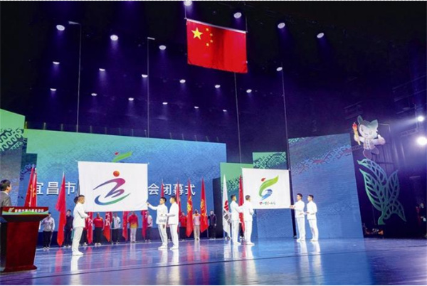10月17日,市六运会闭幕式上降宜昌市运动会会旗和宜昌市…